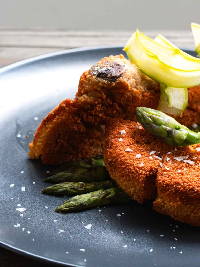 - Guarnite con l’asparago croccante.